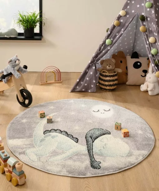 Dino Teppich Rund – Magic Hellgrau -33%