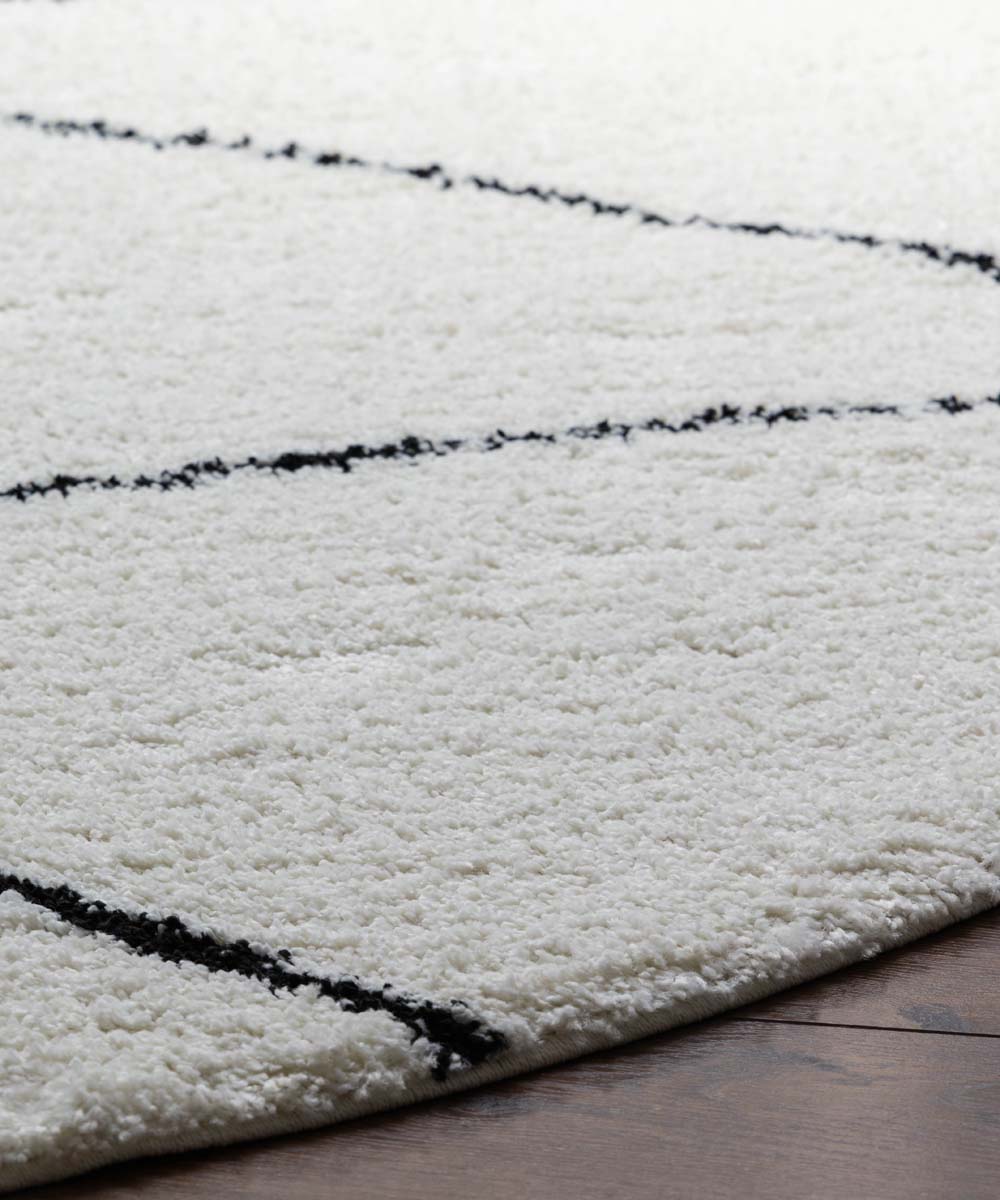 Hochflor Teppich Rund Berber Artisan – Weiß/Schwarz SALE-65%