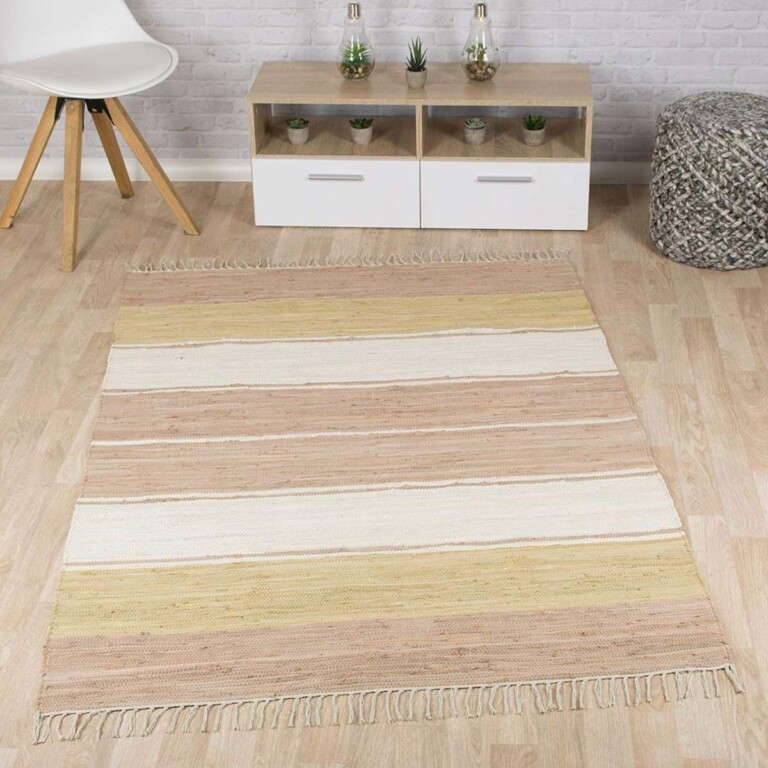 Ein robuster Teppich, handgewebt für ein natürliches und attraktives Ergebnis. Der einzigartige Webstil verleiht dem Teppich einen eigenen Charakter, der perfekt zu einem skandinavischen oder ländlichen Interieur passt. Beide Enden haben Fransen. Durch die besondere Webtechnik behält der Teppich über die Jahre hinweg seinen Stil. Ein langlebiger und strapazierfähiger Teppich zu einem erstaunlich niedrigen Preis.
