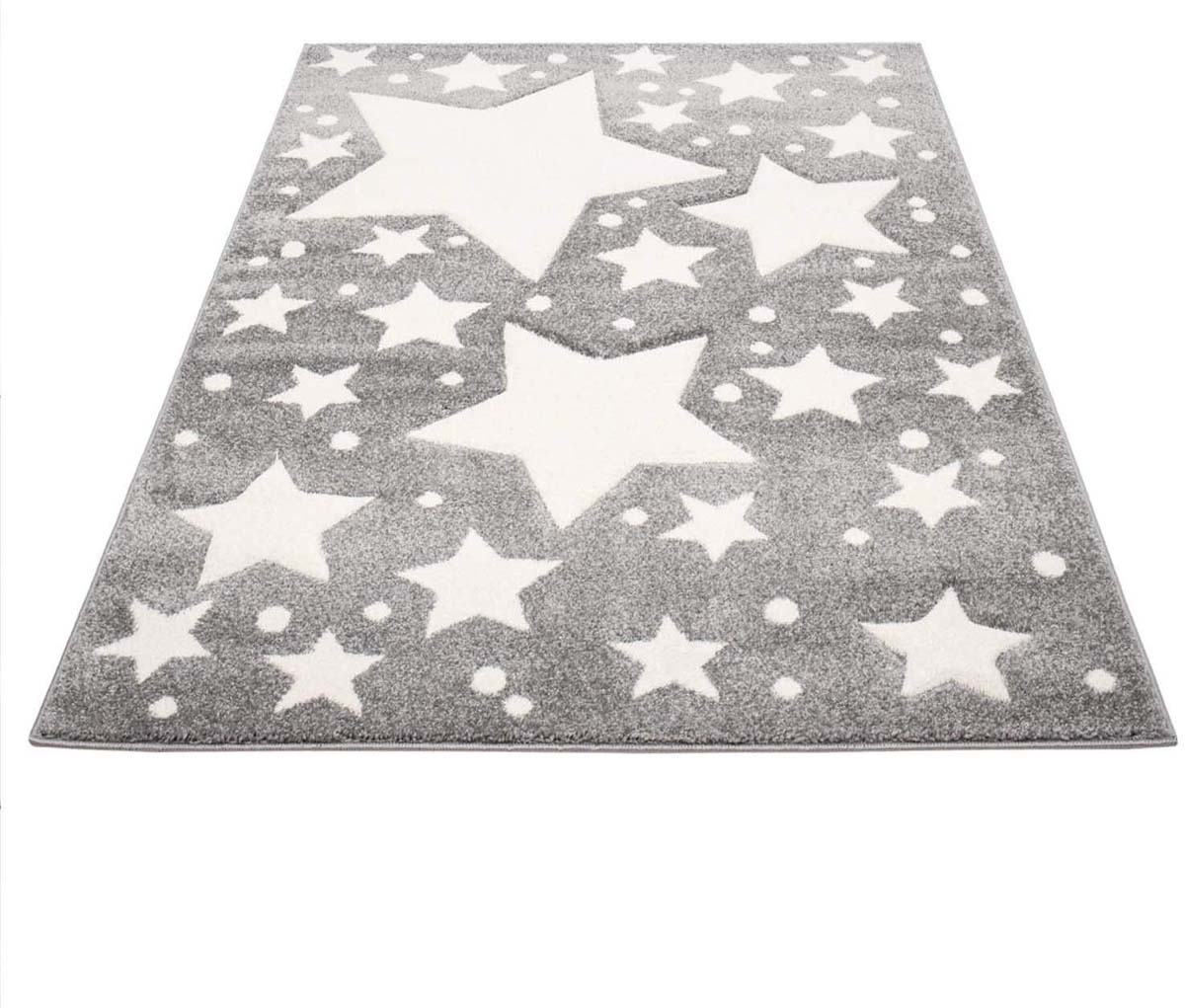 Kinderteppich quadratisch Sterne 3D – Grau/Creme -29%