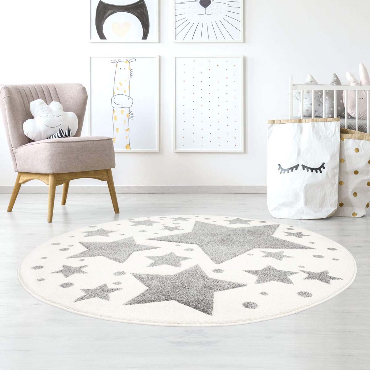 Kinderteppich Rund Sterne 3D – Creme/Grau -29%