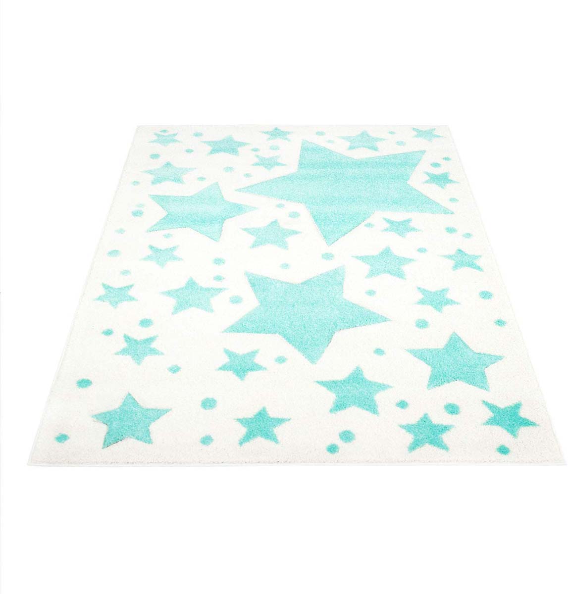 Glänzende Garne und handgeschnittene Konturen verleihen diesem Teppich sein einzigartiges Aussehen. Der Teppich ist schadstoffgeprüft und hat eine weiche, kurzflorige Oberfläche. Er ist strapazierfähig und pflegeleicht. Kurzum, ein perfekter Teppich für das Kinderzimmer.