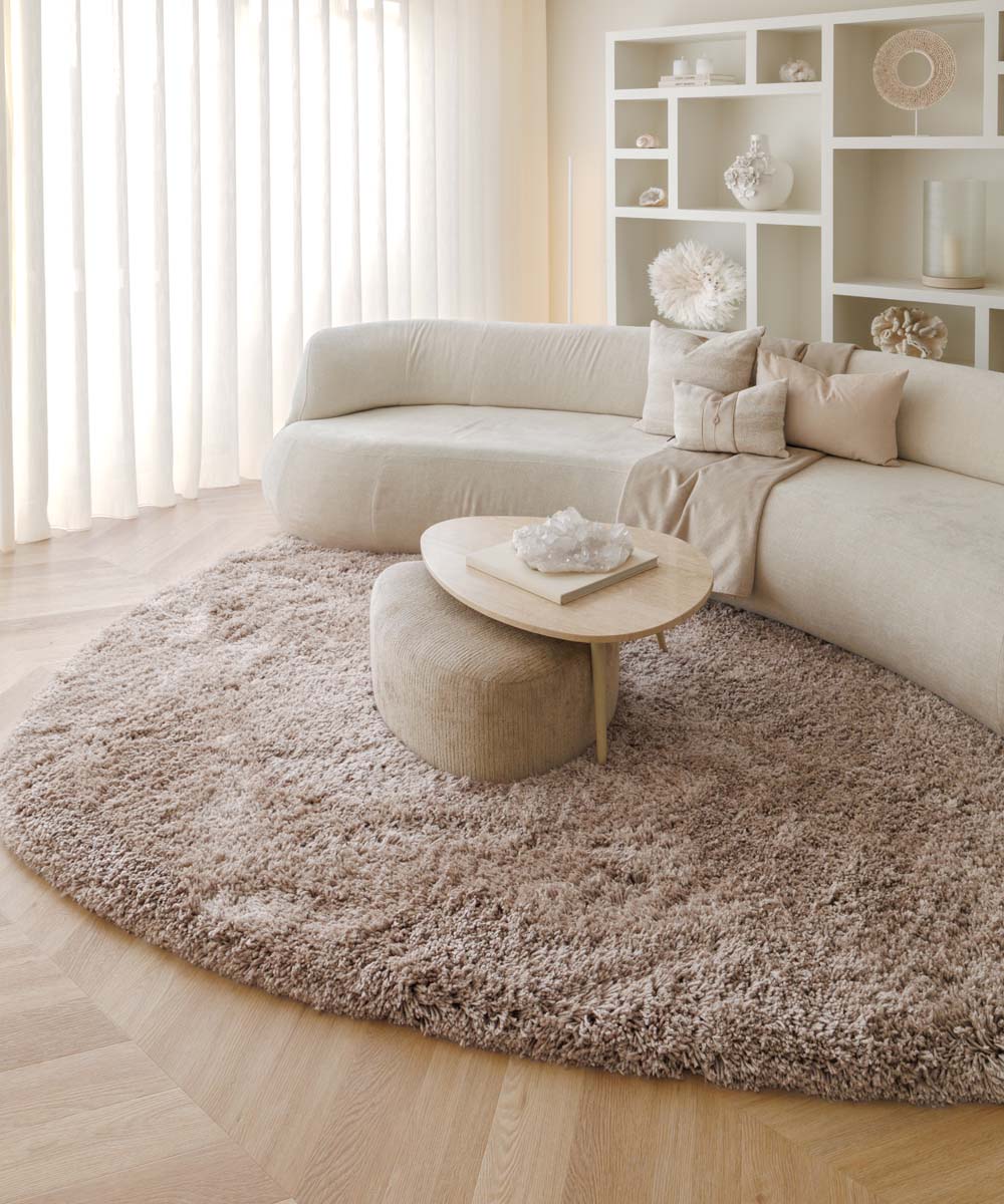 Shaggy Teppich Organische Form – Sveve Pebble Sandfarbe SALE-30%