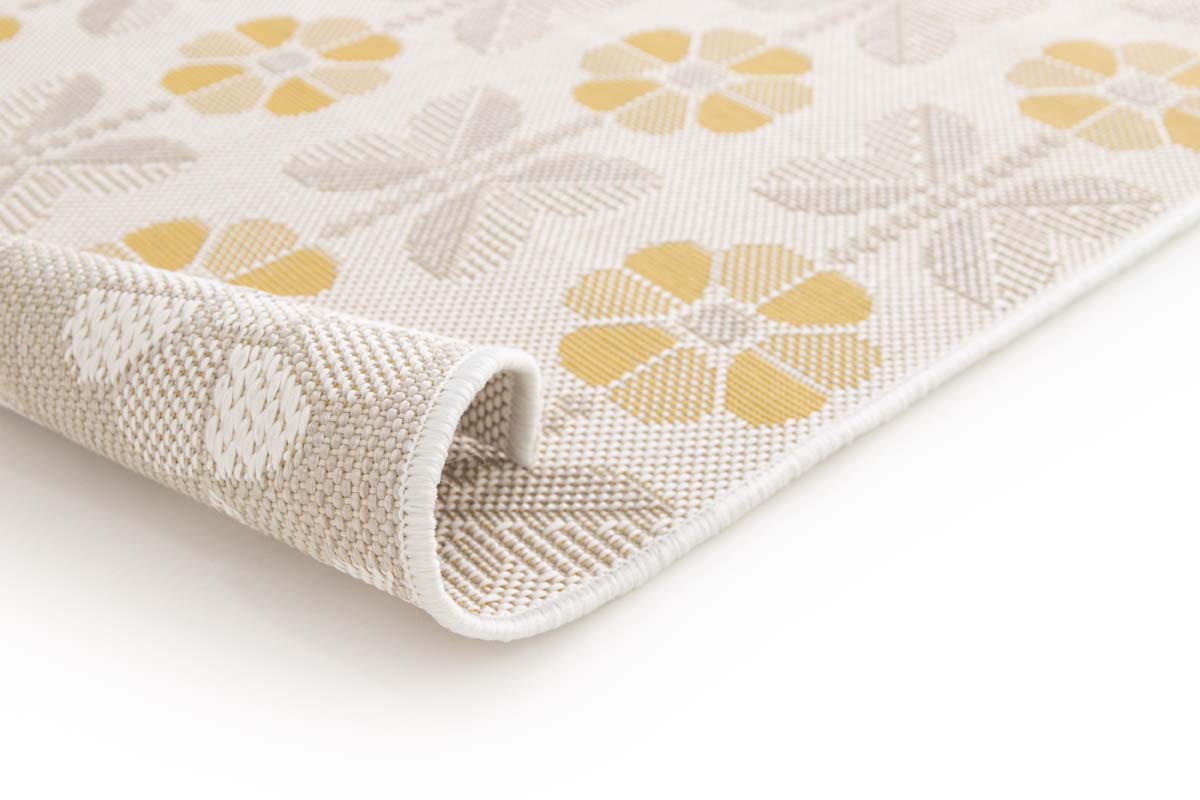 Amber bringt eine frische und warme Ausstrahlung in deinen Außenbereich. Die dezenten Farbtöne und die raffinierte Struktur schaffen eine harmonische Atmosphäre, ideal für Terrasse oder Balkon. Hergestellt aus recyceltem Polyester und zertifiziert durch Oeko-Tex und GRS, ist dieser Teppich eine nachhaltige Wahl, ohne auf Stil zu verzichten.