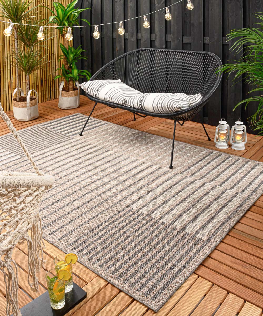Die Sunny Days-Kollektion von Boho & Me zeigt die neusten Trends im Bereich Outdoor Teppich. Dank des Großeinkaufs ist der Teppich mit einem Gewicht von 1500 Gramm pro Quadratmeter und einer Höhe von 7 mm in Bezug auf das Preis-/Leistungsverhältnis ein Geschenk des Himmels. Auf dem Teppichmarkt findest du nur selten einen Outdoor Teppich dieser Qualität zu diesem Preis. Wenn du einen Gartenteppich, einen Balkonteppich oder einen robusten Teppich für drinnen suchst, ist dies das richtige Produkt für dich.