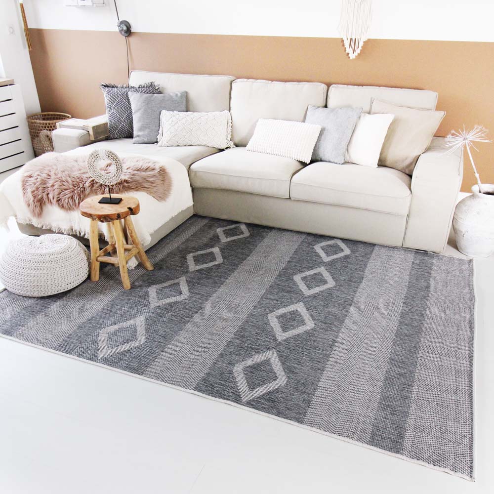 Die Joy de Vivre Triangle Kollektion ist da. Ein Durchbruch bei den traditionellen Webtechniken sorgt dafür, dass sich das Dreieck im Flechtmuster unterscheidet. Dadurch entsteht ein einzigartiger Effekt, bei dem die verschiedenen Schichten noch stärker hervortreten. Außerdem kann der Teppich dank eines speziellen Herstellungsverfahrens von beiden Seiten verwendet werden. Dadurch wird auch das Farbmuster in die entgegengesetzte Richtung verändert. Polypropylen, auch bekannt als Kunstwolle, hat gegenüber Wolle eine Reihe von Vorteilen. Der Teppich ist sehr günstig und fusselt nicht. So kannst du dich an einem schönen Teppich erfreuen, ohne deinen Geldbeutel zu strapazieren.