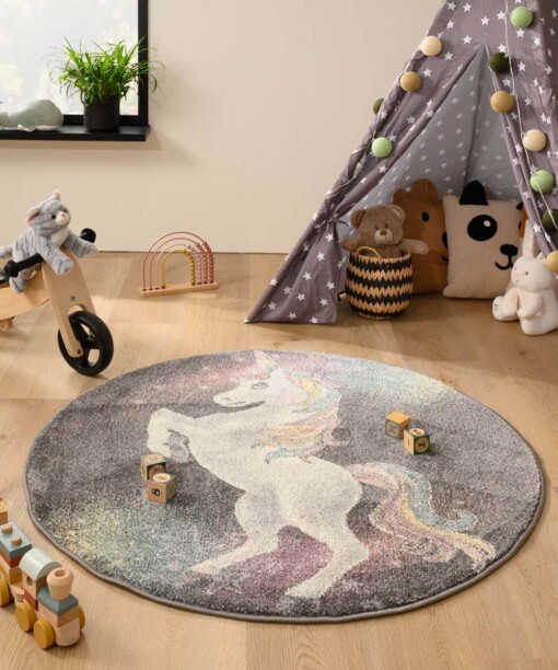 Teppich Einhorn Rund – Dreams Grau/Bunt -33%