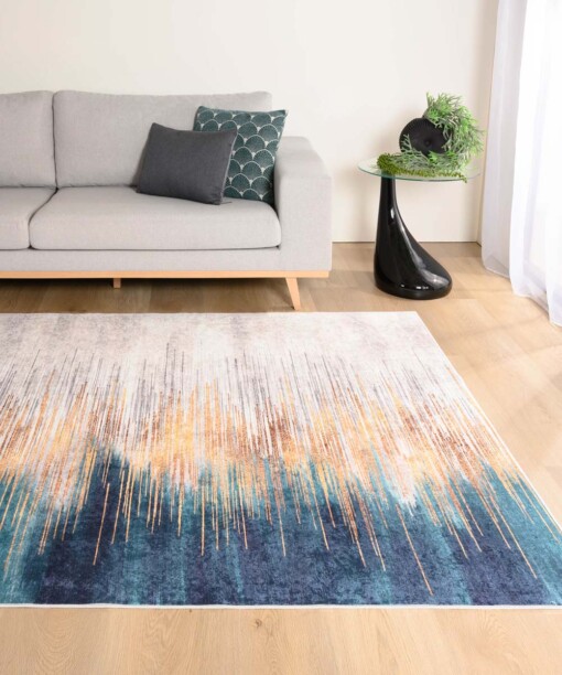 Teppich Modern Waschbar – Moderna Gold/Petrol SALE-60%