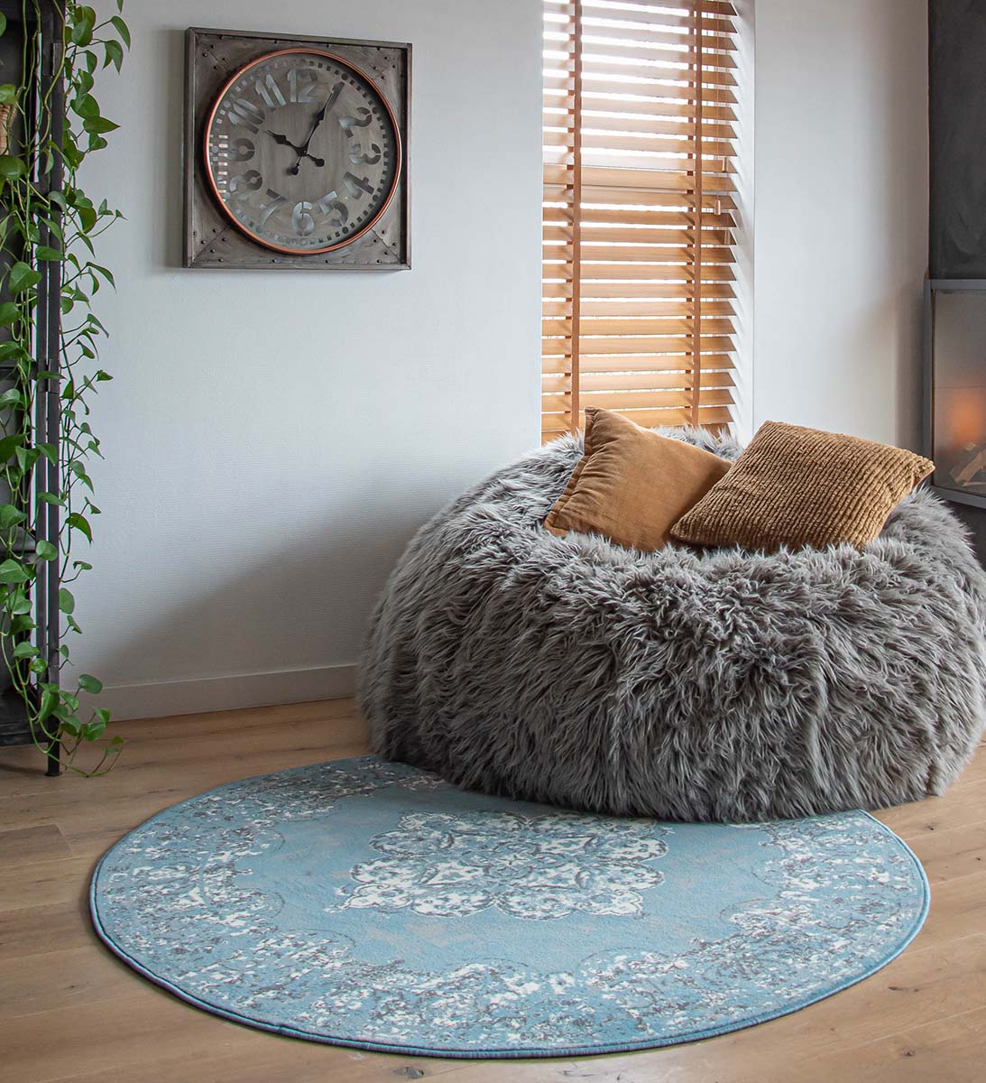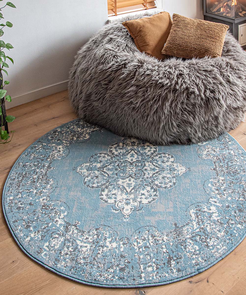 Vintage Teppich Rund Antiq – Blau -71%