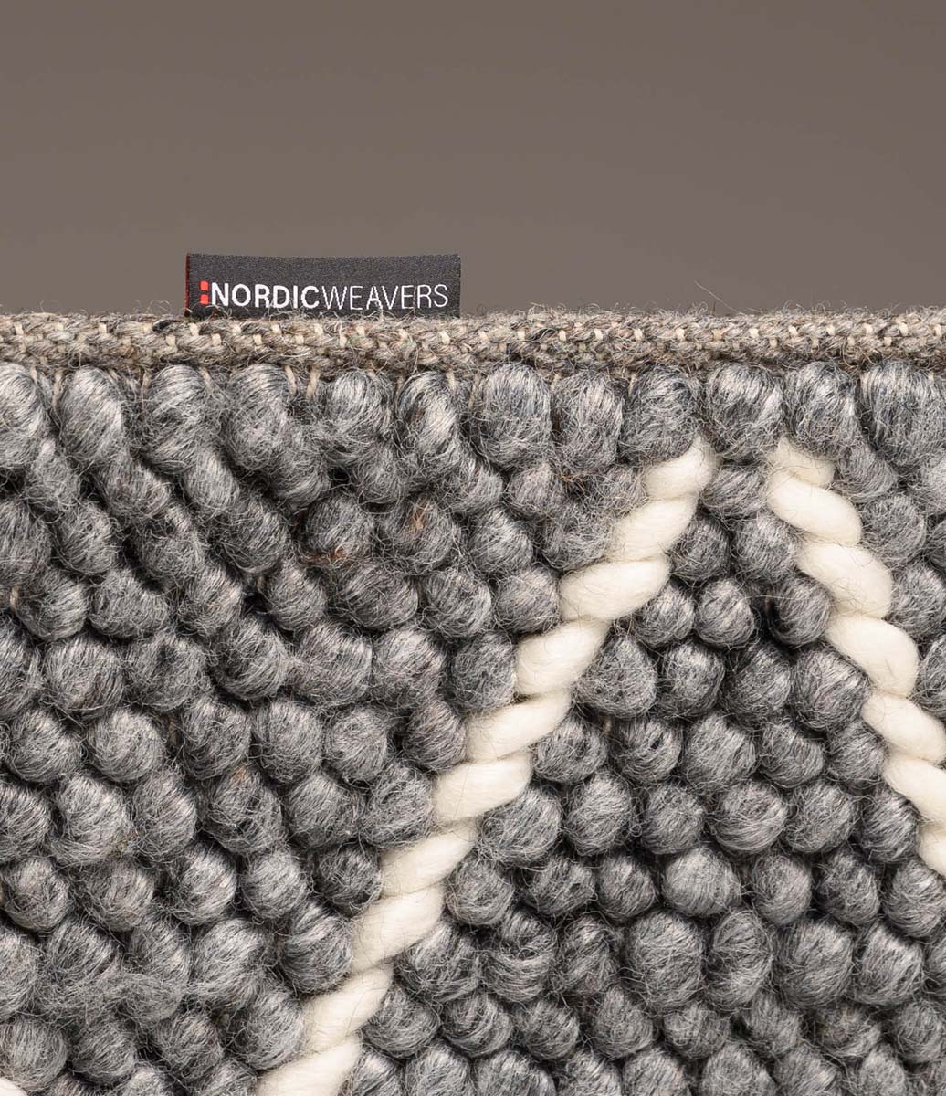 Wir sind sehr zufrieden mit den Produkten von Nordic Weavers. Wollteppiche mit skandinavischem Touch. Die höchste Qualität, die wir je verkauft haben. Es beginnt mit der Auswahl der Wolle, bei der eine spezielle Schafrasse mit besonders langen und starken Haaren ausgewählt wird. Auch Neuseeländische Wolle genannt. Die Wolle wird sehr gründlich gereinigt. Und dann auf traditionelle Art und Weise gefärbt. Die Wolle wird mit einem kleinen Anteil (10 %) Viskose gemischt, um dem Garn etwas mehr Leben einzuhauchen.